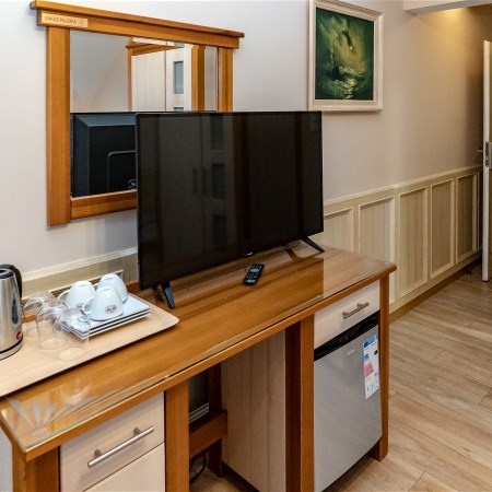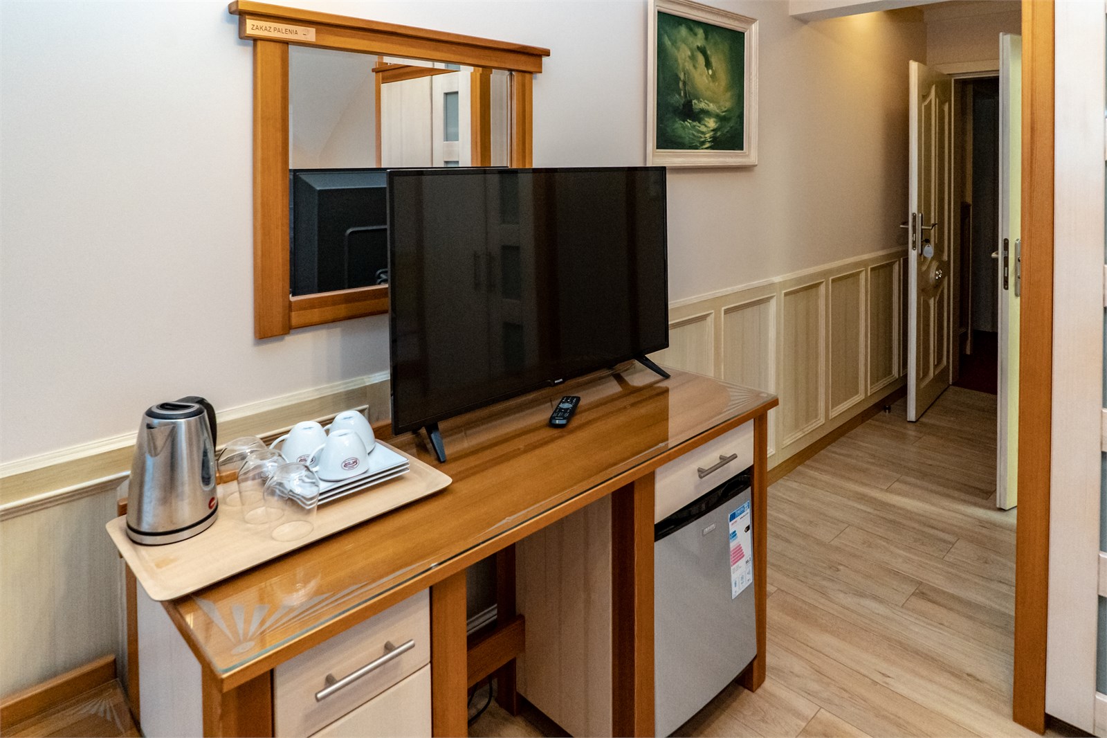 Komfortowe pokoje wyposażone są w nowe meble z drewna litego, parawany i telewizję.